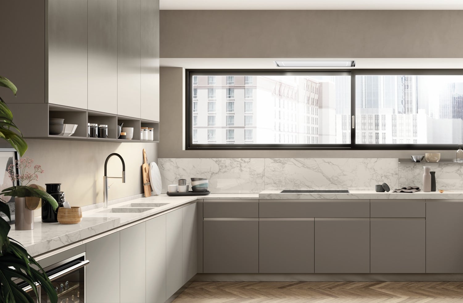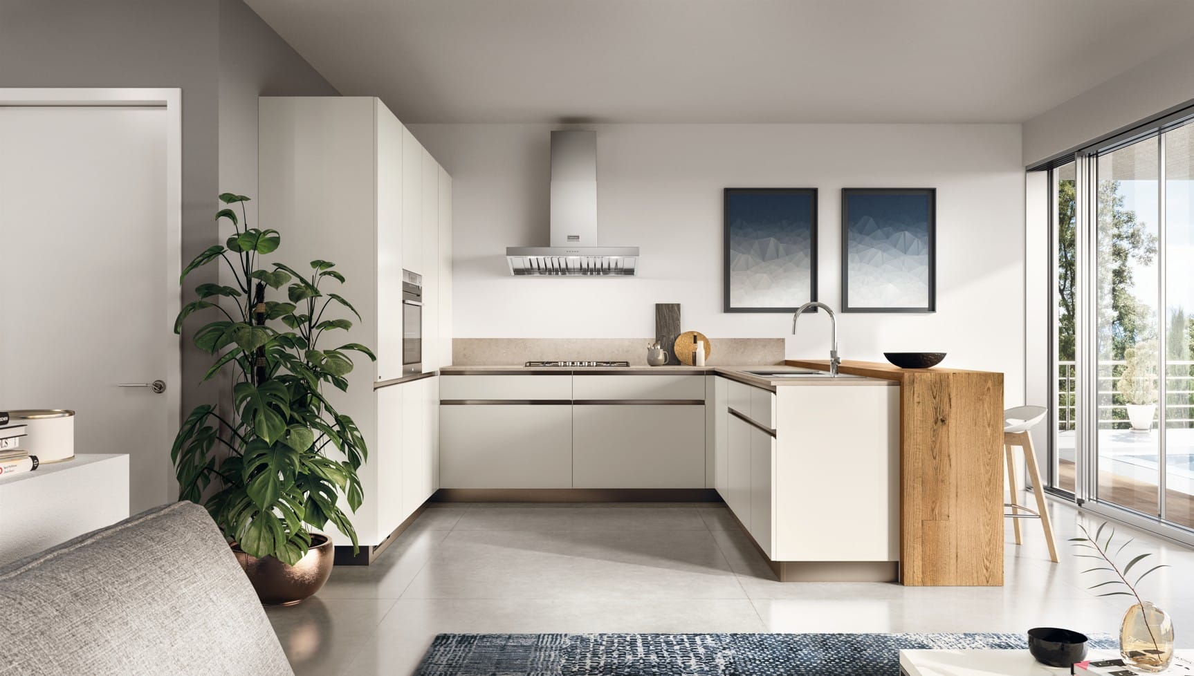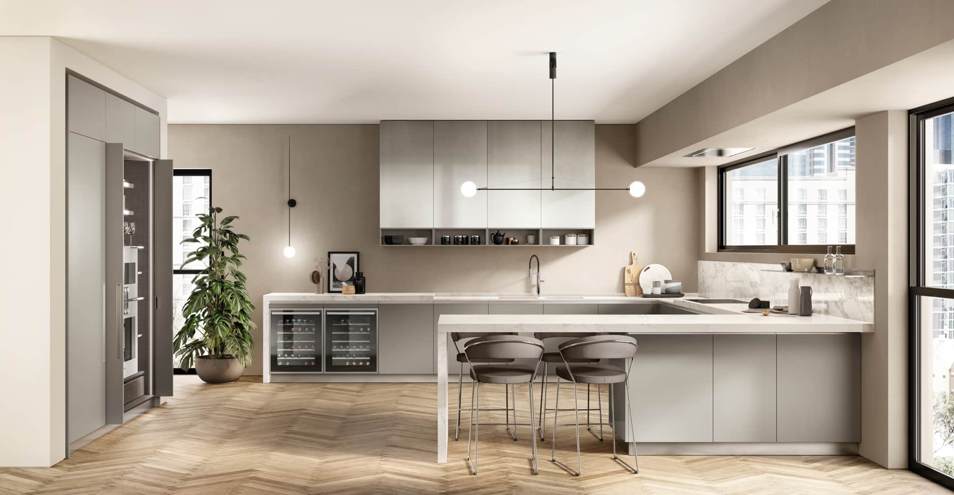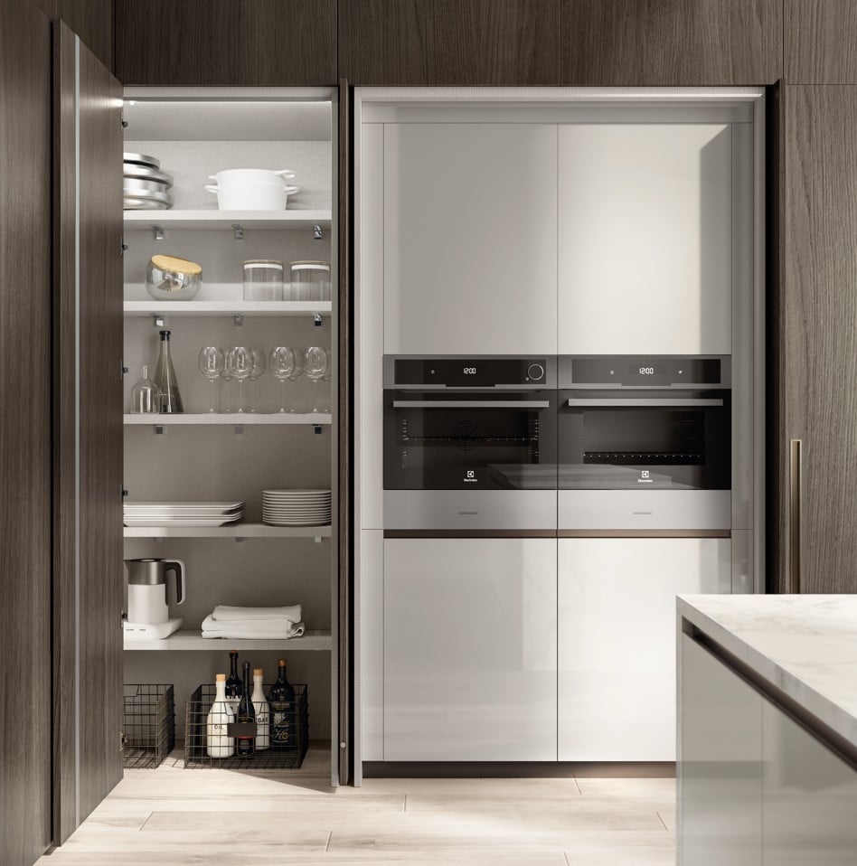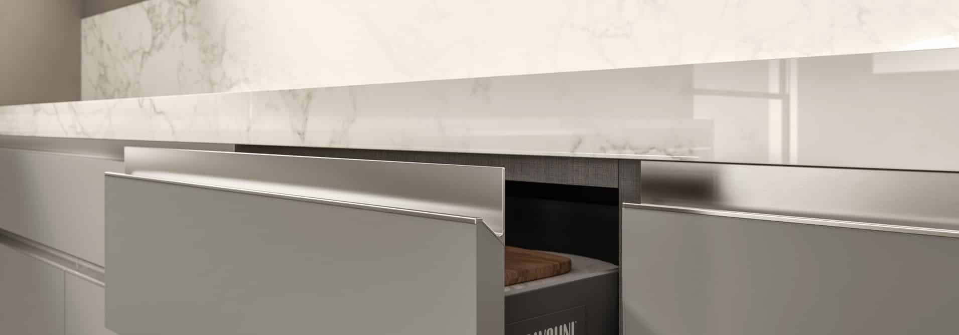 Yhdistä 22 mm ovet, 45° profiilikahvat ja piiloutuvat ratkaisut täysin omanlaiseesi kokonaisuuteen.