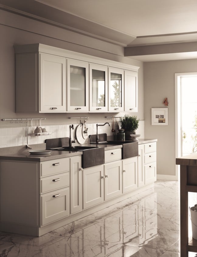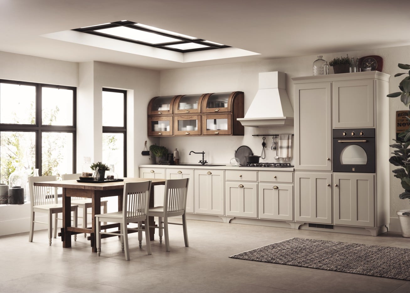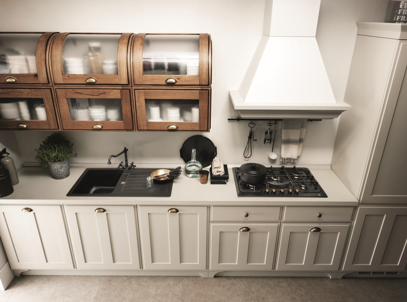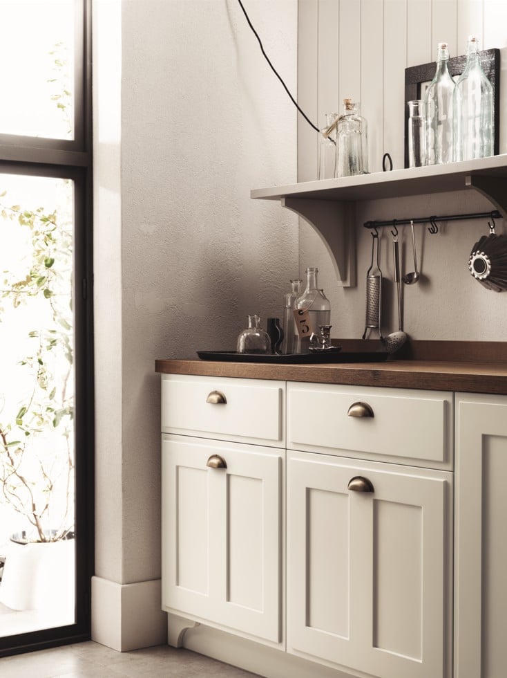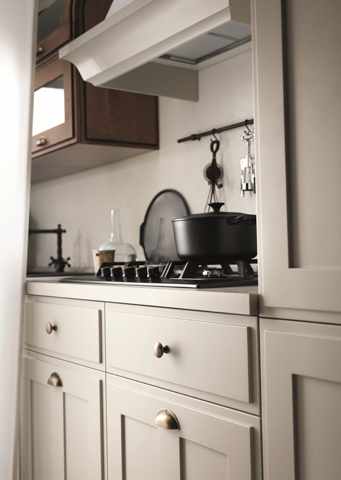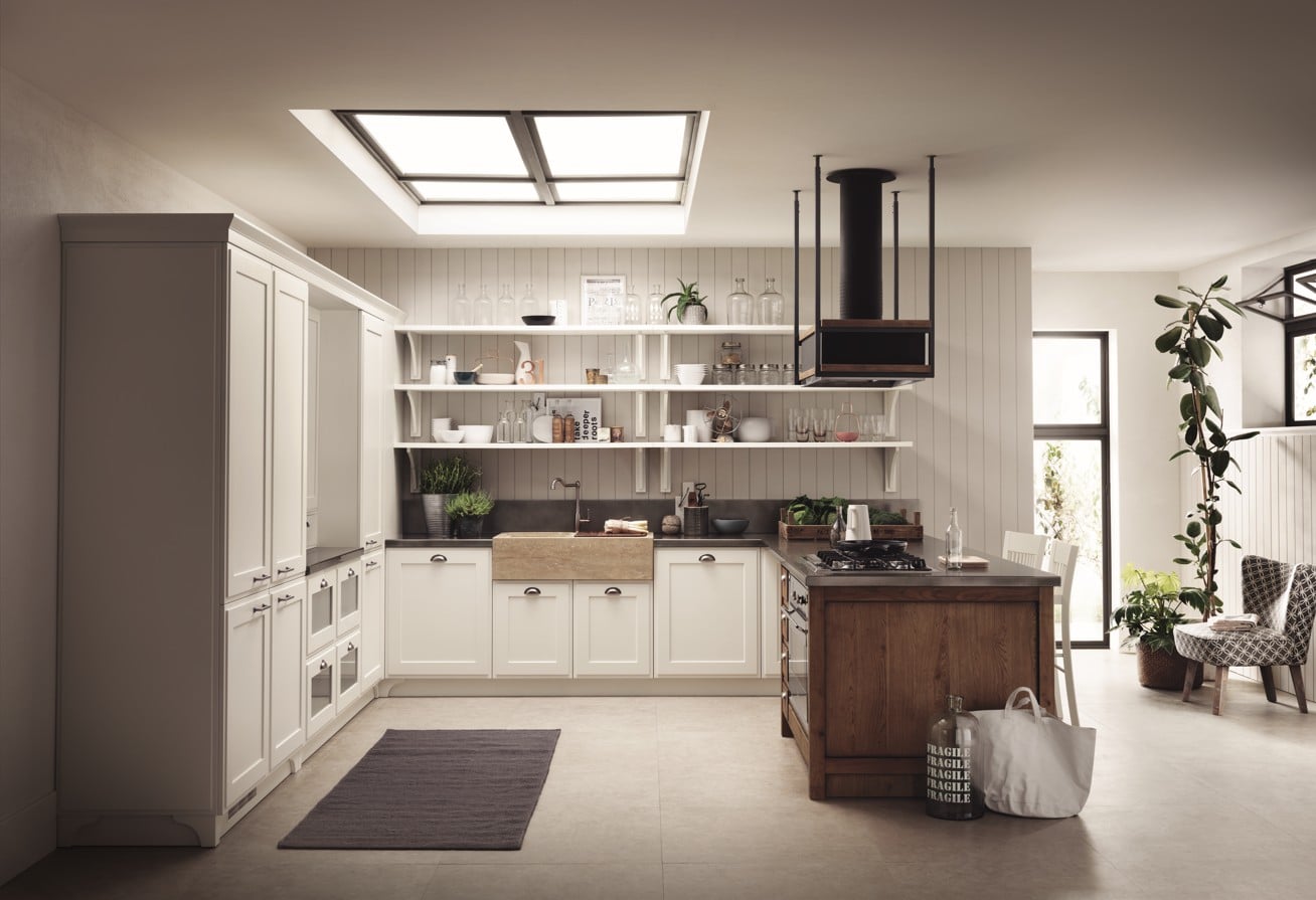 Jos rakastat shabby chic -tunnelmaa, maalaistalojen lämpöä ja romanttisia yksityiskohtia, Favilla on sinun mallistosi. Tämä on country chic täydessä kukoistuksessaan: 2,5 cm paksu massiivipuukehysovi, pyöristetyt lasivitriinikaapit ja Favilla-liesituuletinpiippu luovat “timeless welcome” -tunteen – keittiön, joka toivottaa aina tervetulleeksi. Ainoa Scavolini-mallisto, joka tuo Italian maalaistalojen sielun suoraan kotiisi.