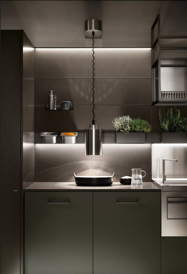 Yhdistä Line System -seinäpaneelit, terästyötasot ja Carlo Craccon suunnittelemat ammattilaislaitteet täydelliseksi ruoanlaittokokemukseksi.