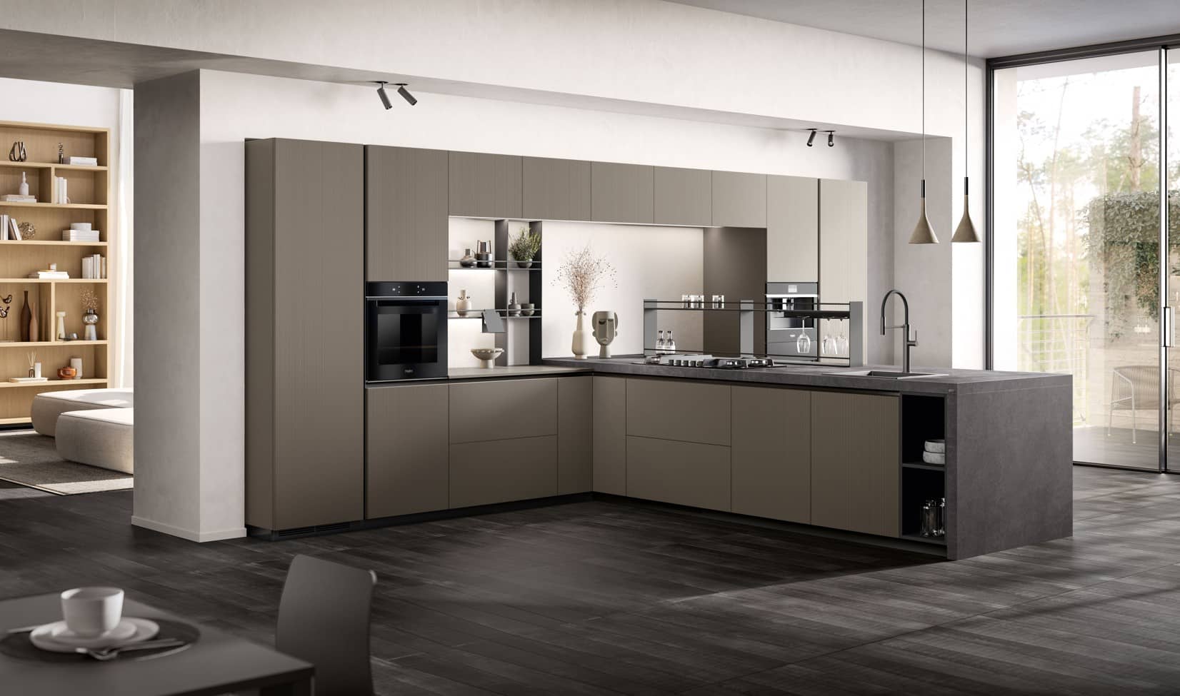 L-muotoinen profiili ovessa erottaa Miran muista Scavolini-mallistoista – tekninen yksityiskohta, josta on tullut tunnistettava design-elementti.