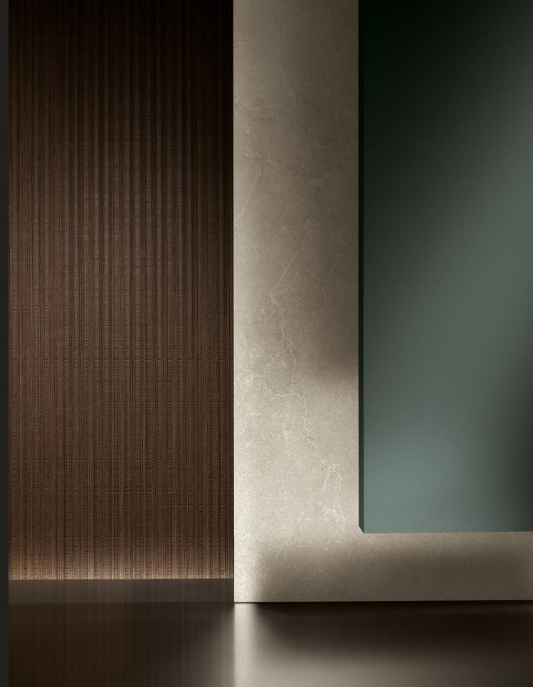 Yhdistä L-profiilin ovet, helmiäishohtoiset Perlage-sävyt ja sofistikoidut tekstuurit hillityksi kokonaisuudeksesi.