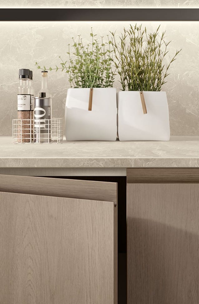 Konfiguroi Motus juuri sellaiseksi kuin haluat tänään – ja muokkaa se uudelleen huomenna. Lineaarinen, kulmamalli, saareke tai niemeke: täydellinen muotoilun vapaus tarkoittaa, että voit rakentaa kokonaisuuden täysin omien tarpeidesi mukaan. Fluida Wall System, seinälle kiinnitettynä tai vapaasti seisovana, luo monikäyttöisen tilan ilman kiinteitä väliseiniä; avohyllyt ja seinäkaapit vuorottelevat ja tuovat rytmiä. 65 cm syvät ulkonevat laatikot altaan ja lieden alla tarjoavat sekä lisätilaa että näyttävää geometriaa. Opus-, Sign- ja Setup-järjestelmät pitävät tarvikkeet järjestyksessä. Hienostunut väripaletti (kiiltävä tai mattalakattu sekä melamiini) antaa mahdollisuuden rakentaa värimaailma, joka heijastaa omaa tyyliäsi. Motus on keittiö, joka hälventää rajat työn, ruokailun ja rentoutumisen välillä – ja kasvaa elämäsi mukana.