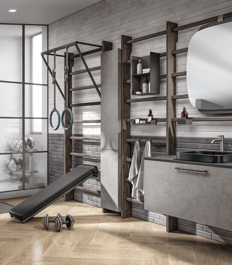 Gym Space on ainoa Scavolini-kylpyhuone integroidulla kuntosalilla