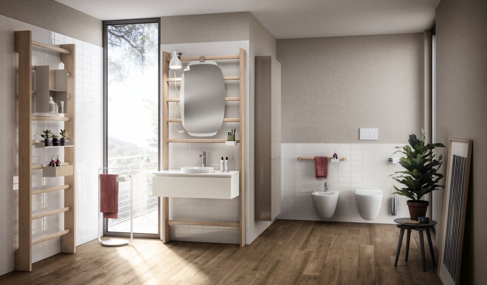 Kiinnitä penkki, TRX-järjestelmä tai pelkkä peilisi voimistelutelineeseen ja luo kylpyhuone joka sopeutuu aktiiviseen elämääsi.