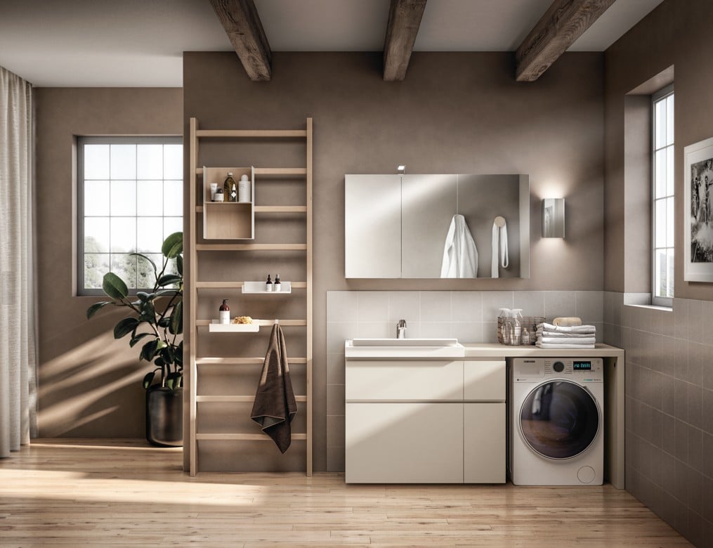 Jos haluat kylpyhuoneen joka kannustaa aktiiviseen elämäntapaan – ei erillistä kuntosalihuonetta vaan saumattomasti integroitu fitness-alue – Gym Space on sinun mallistosi. Tämä ei ole pelkkä kylpyhuonemallisto kuten Aquo tai pelkkä smart-teknologia kuten Dandy Plus – tämä on uusi hyvinvoinnin konsepti jossa fyysinen liikunta ja henkilökohtainen hoiva yhdistyvät. Uudelleentulkitut Gymnastics Wall Bars toimivat sekä treenitelineenä että modulaarisena seinänä johon kiinnität kaiken tarvittavan. Formalia on home system, Aquo on minimalistinen, mutta Gym Space on aktiivinen – ainoa Scavolini-kylpyhuone joka tekee treenaamisesta osan päivittäistä hyvinvointirutaania.
