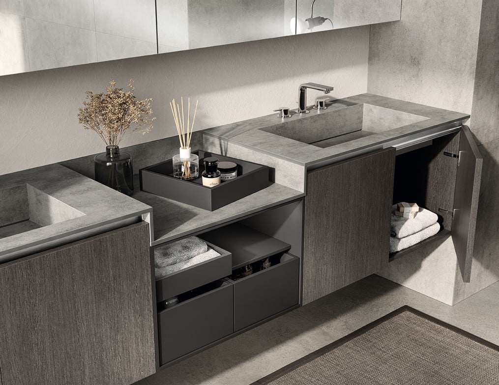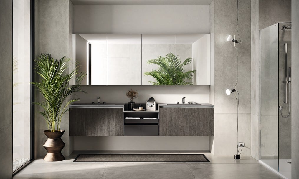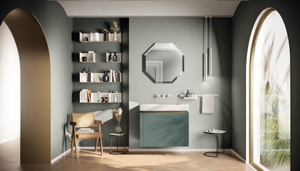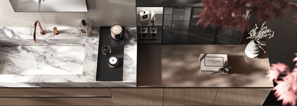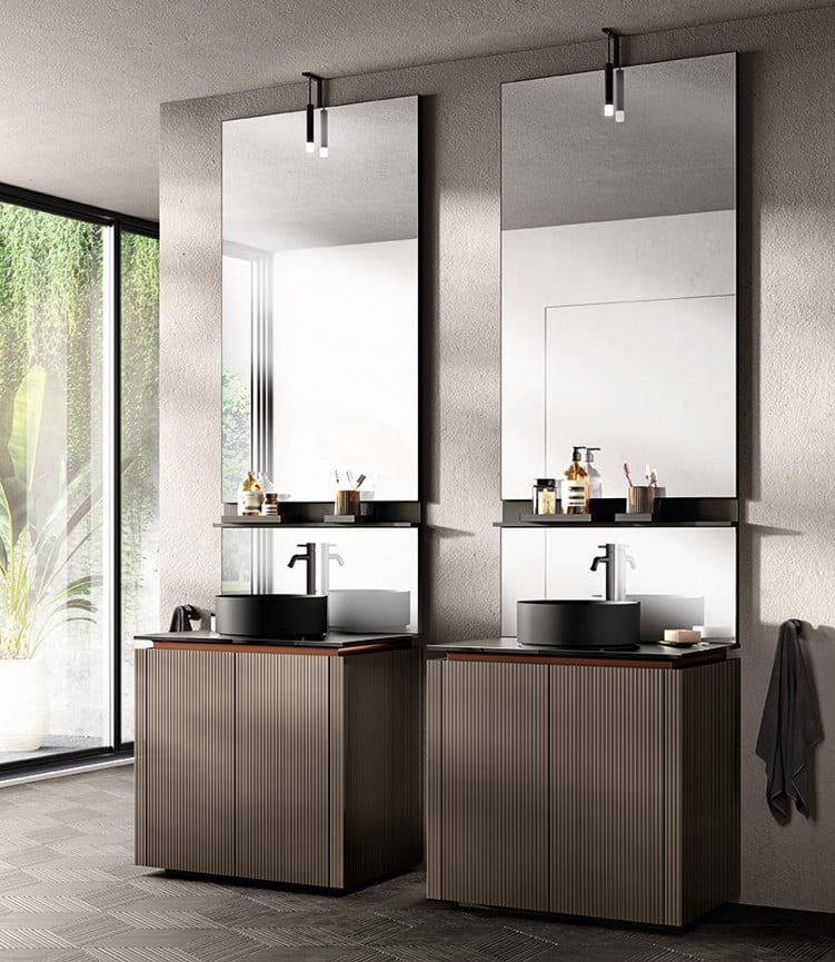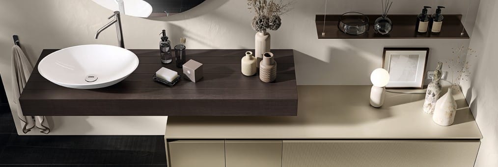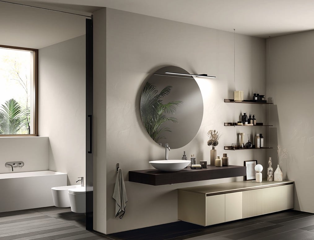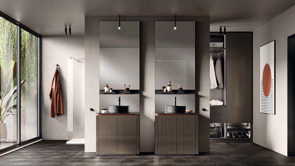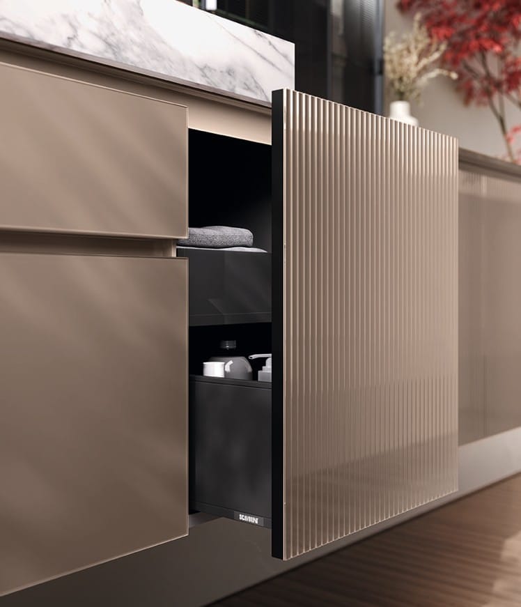 Ainoa Scavolini-kylpyhuone pearl-effect väreillä ja säleoviversioilla