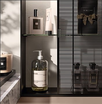 Lidon signature on sen ainutlaatuiset Cuvée, Pas Dosé ja Perlage -helmokiiltovärit jotka tuovat syvyyttä ja hienostuneisuutta minimalismiin. Nämä erikoisvärit ovat saatavilla sekä sileänä että pysty- tai vaakasäleversioina – luoden visuaalista tekstuuria ja taktiilista kokemusta. Dark Steel -alumiinikehysovi Round- tai Linear wire mesh -verkolla tuo teollista eleganssia, lasiovet savu- tai kirkaslasina lisäävät läpinäkyvyyttä. Yhdistettynä Connection- tai Home-altaisiin, Slate Black- tai Morocco Red -aksenttiväreillä, Sign-tankoon ja Phoenix-peileihin saat kylpyhuoneen jossa jokainen pinta kertoo tarinaa. Miko on L-muotoiltu, Mira on contemporary, mutta Lido on viimeistelyjen taideteos – niille jotka ymmärtävät että kauneus on yksityiskohdissa.