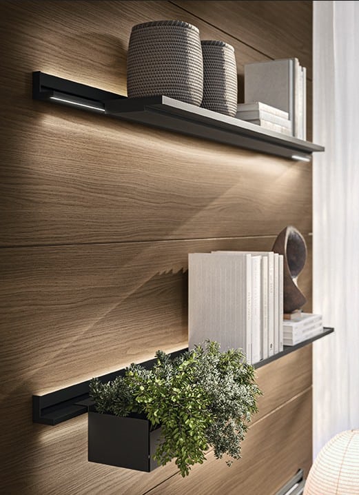 Ainoa Scavolini-olohuone jossa 40° kulmaleikkaus kohtaa Fluida-järjestelmän