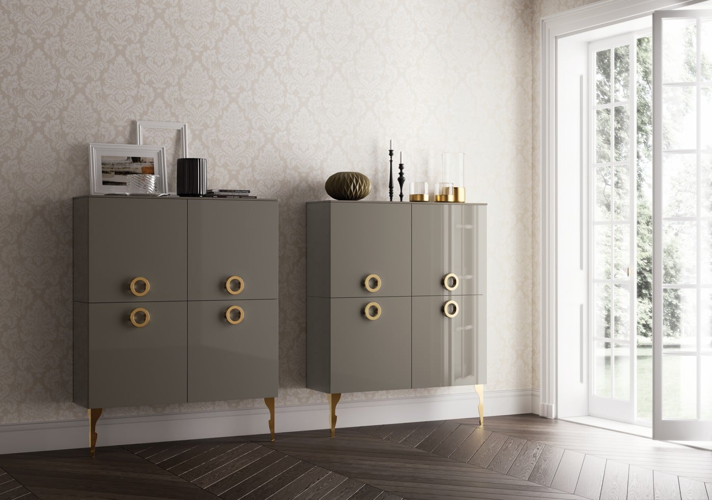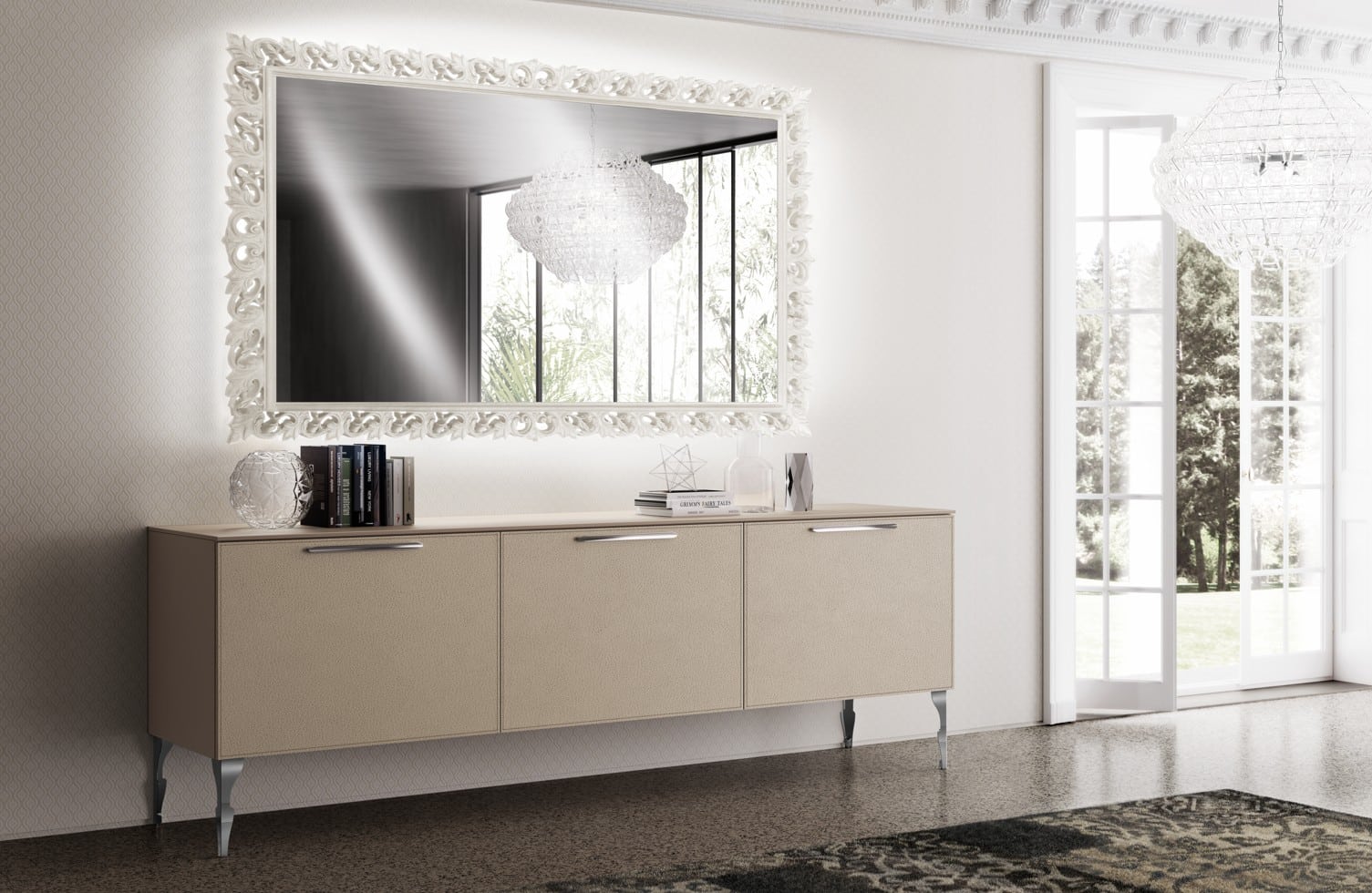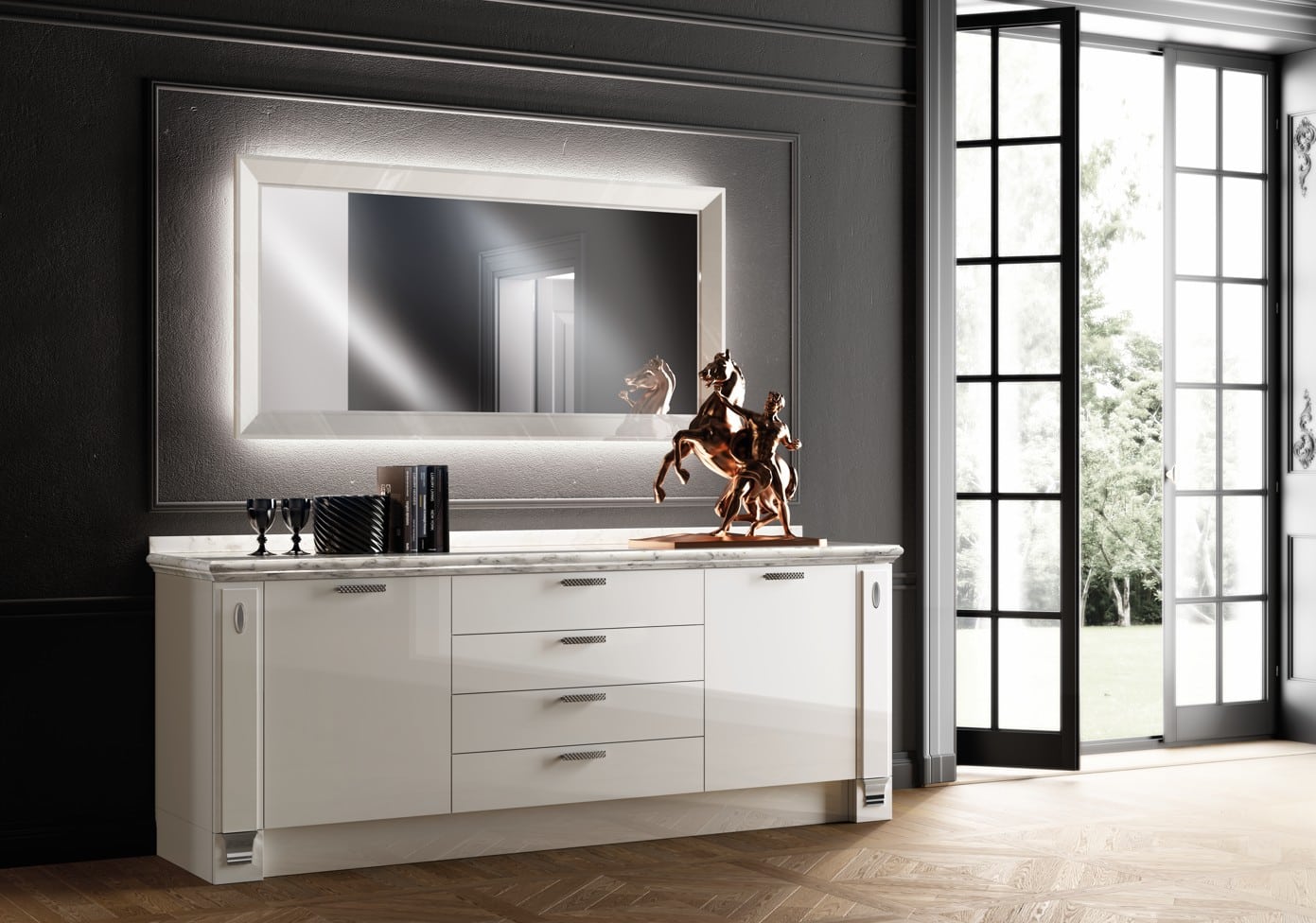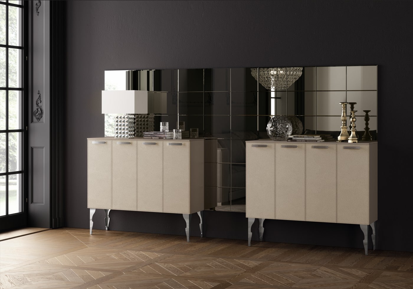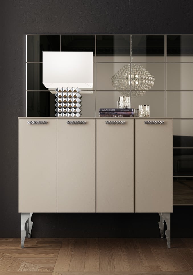 Valitse nahkaovet Swarovski®-kristalleilla, Stopsol-peili ja kultaiset kapiteelit luksukseksi joka puhuttelee.