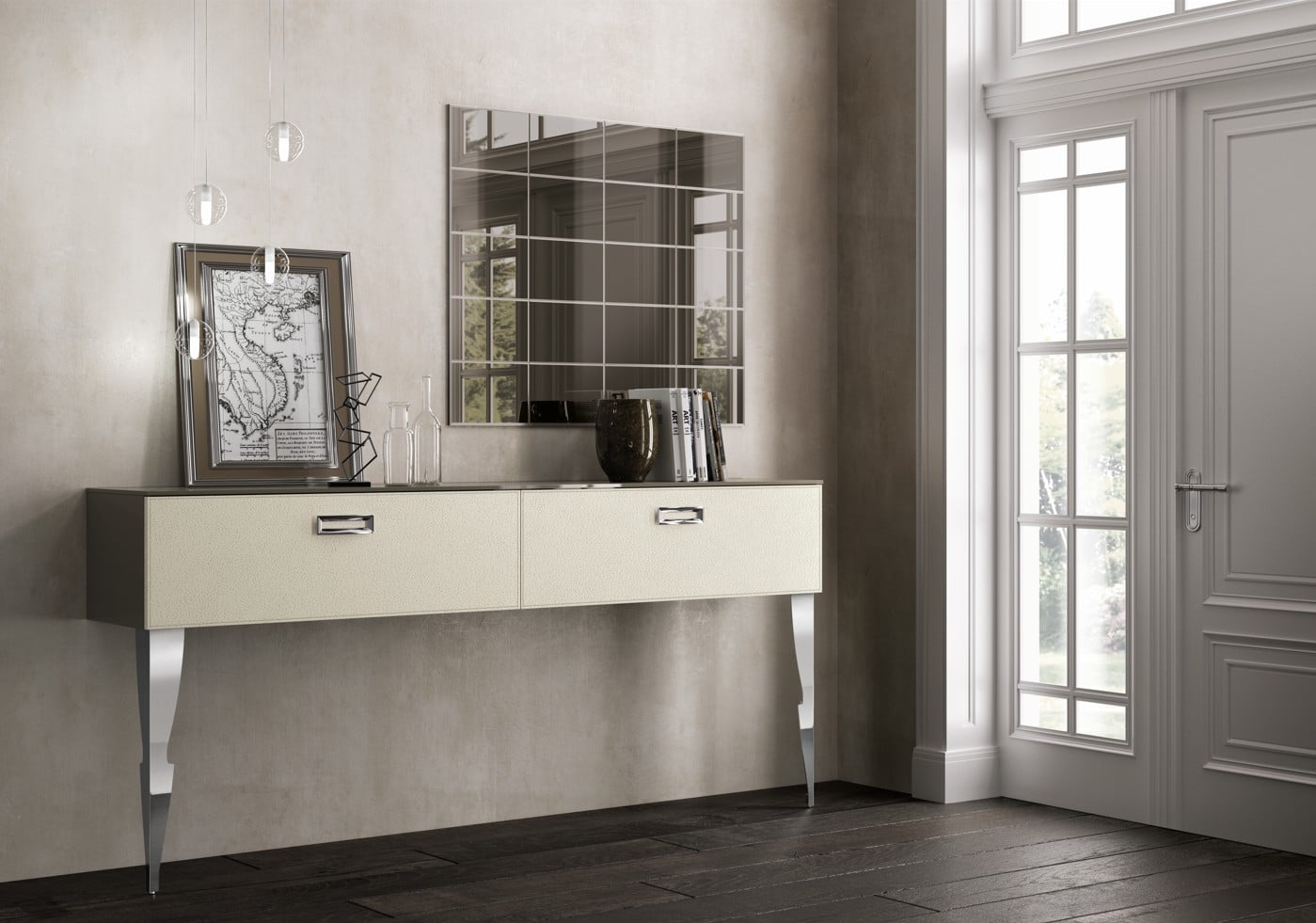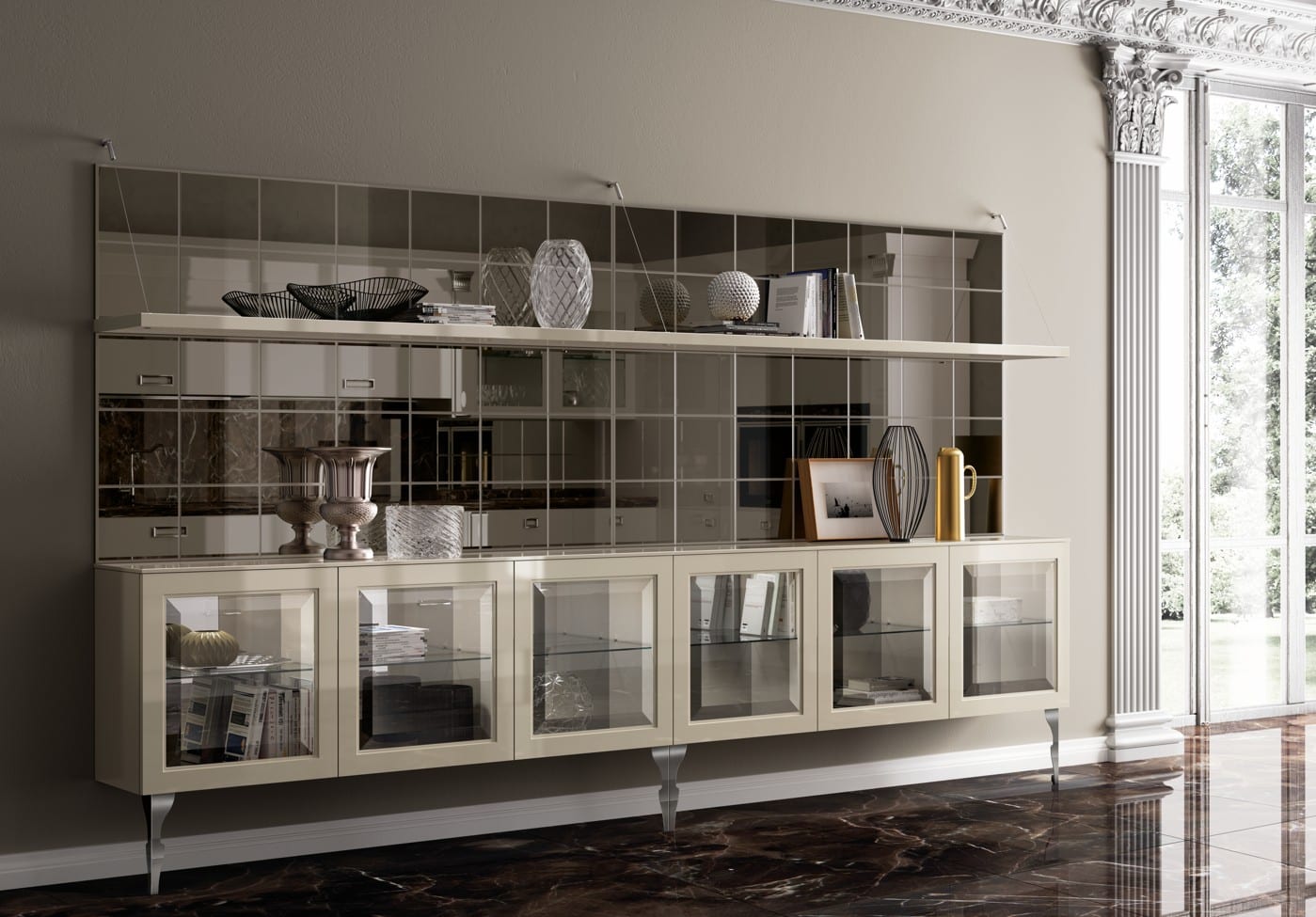 Niille jotka rakastavat klassista tyyliä mutta eivät halua luopua moderneista elementeistä. Vuessen suunnittelema Exclusiva Living on täydellinen avioliitto klassisen arkkitehtuurin ja nykyaikaisen muotoilun lineaarisuuden välillä – tämä kokoelma kuuluu klassisten tuotteiden kategoriaan samalla kun se tuo modernin käänteen. Exclusiva erottuu räätälöidyillä yksityiskohdillaan jotka liitetään käsityötaitoon – yksityiskohdat jotka Scavolini pystyy saavuttamaan teollisen kulttuurinsa perintöä hyödyntäen. Nahka tai eko-nahka -ovet ommeleilla reunoissa kolmessa värissä (Plaster, Pearl Grey, Ebony), kultaiset tai kromi kapiteelit 15 cm koristeelementeissä, Swarovski®-kristallikahvat, ja Stopsol-peililevyt täydentävät ilmeen – tämä on olohuone jossa klassinen jalanjälki johtaa hallittuun luksuuteen.