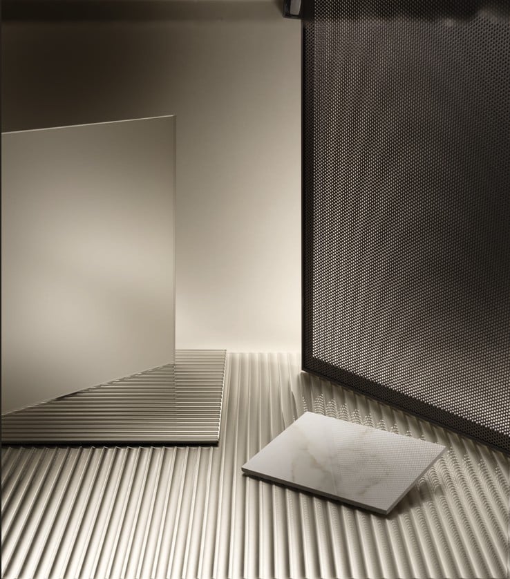 Ainoa Scavolini Living dogattuja lasipintoja ja metalliverkkoja yhdistävä mallisto