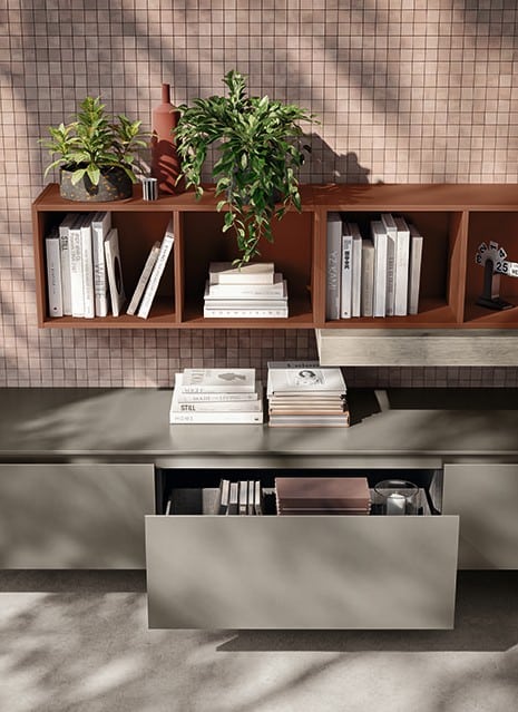 Voiko olohuone olla teatterillinen ilman ylimääräistä draamaa? Vuesse Designin Lumina Living todistaa, että rohkeus syntyy hallituista yksityiskohdista. 40 asteen viisteovi on malliston tunnusmerkki – ergonomisesti täydellinen ote joka samalla luo siluettiin selkeän, modernin linjan. Round- tai Flat- urakahvat sulautuvat pintaan korostaen puhtaita linjoja, ja kolme helmiäishohtosävyä laajentavat mattalakatusta kiiltolakkattuun valikoimaa. Rei’itetyt metallilevyelementit Round- tai Linear-kuviolla ovat Scavolinin eksklusiivinen muotoiluyksityiskohta – sisävalaistus suodattuu tekstuurin läpi luoden mystisen tunnelman.